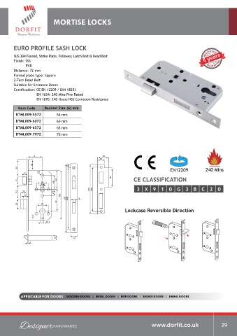 Item Code Backset Size (A) mm Certification: CE EN 12209 / DIN 18251